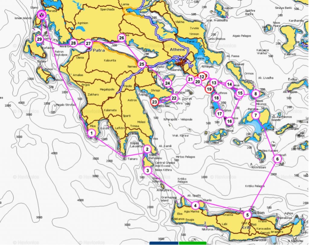2025 ist mal wieder ein Jahr für große Touren. Wir wollen fast ganz Griechenland zu Wasser bereisen, d.h. Ionisches Meer, Peloponnes, Kreta, Kykladen, saronischer Golf, Golf von Korinth. die Route ist hier skizziert.